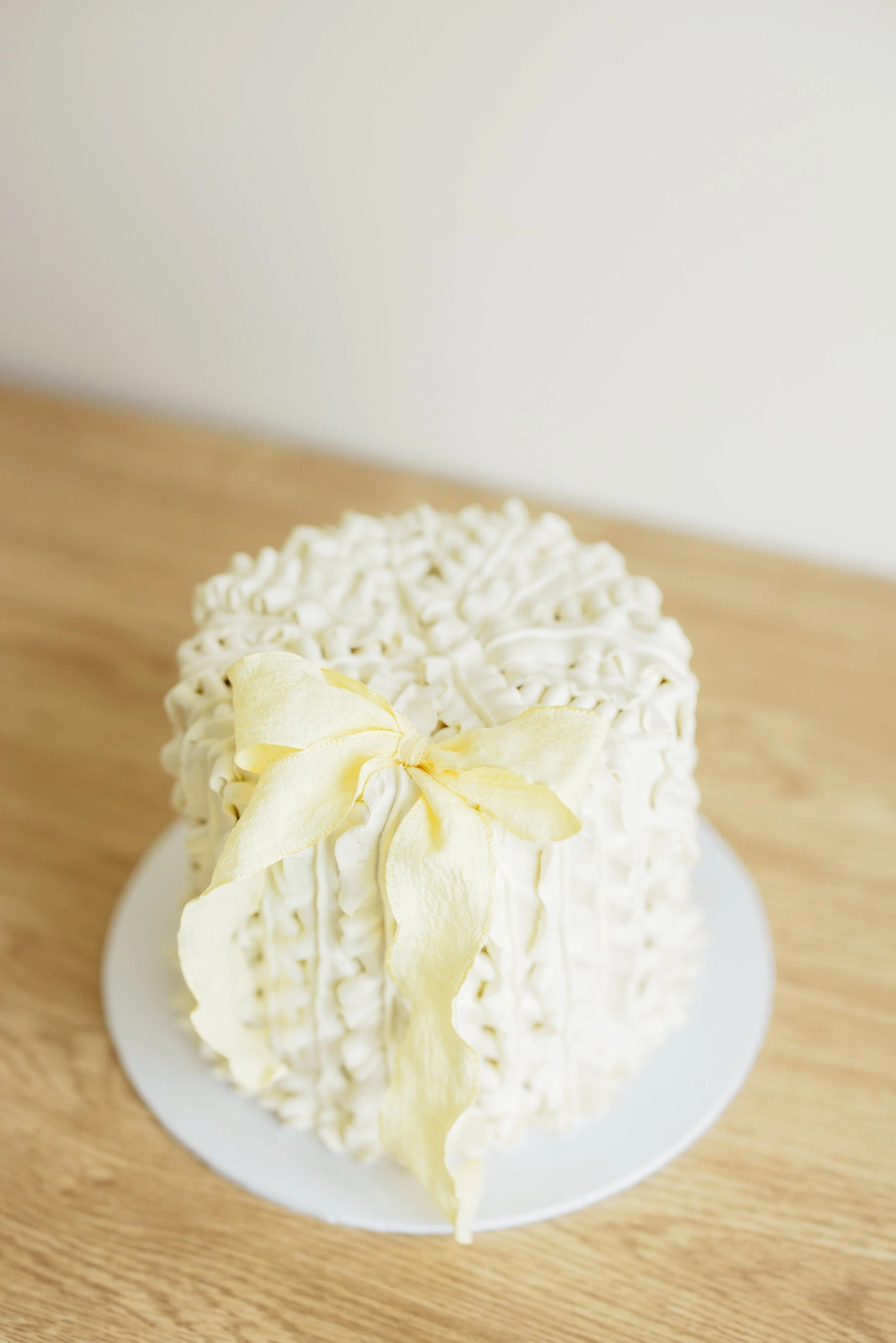 Ribbons on ribbons from $95.00 Vintage bow cakes from $95.00 Pressed flower cakes from $95.00 Baby cakes from $72.00 Floral shortbread $60.00 Flat lay cake toppers $8.00 Candles $2.00 Salted caramel $16.50 Taster box $75.00 Out of stock